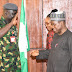 | Defense Minister, Gen Magashi receiving Chief of the Defence Space Administration, Air Vice Marshall Ayo Jolasinmi |